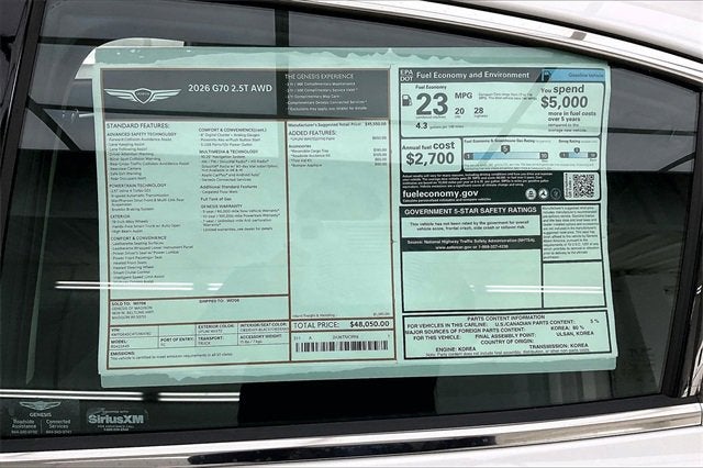2026 Genesis G70 2.5T