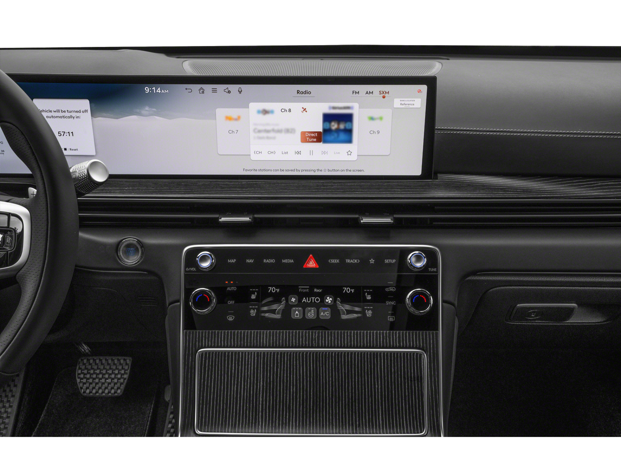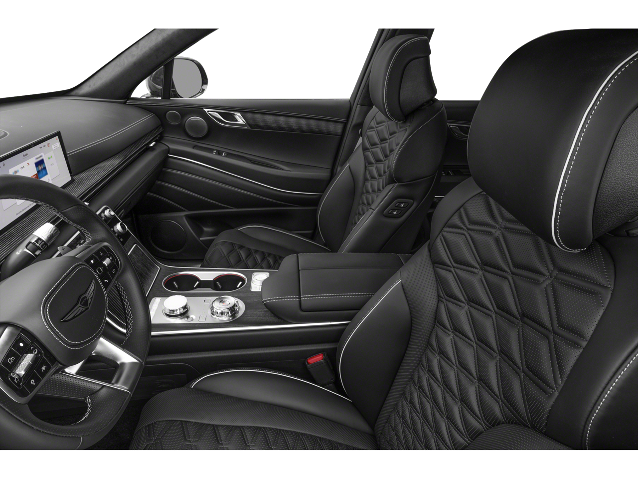 - Radio: AM/FM/HD Bang & Olufsen Premium Audio -inc: 18 speakers, 14-channel amplifier w/1,400 watts max output, 27" integrated OLED screen and navigation system, SiriusXM Radio w/90-day trial subscription (not available in AK or HI), wireless Apple CarPlay and Android Auto, Genesis connected services, Bluetooth® hands-free phone and audio streaming system, Wi-Fi hotspot and USB connectivity