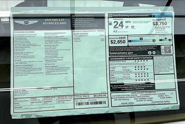 2025 Genesis G80 2.5T
